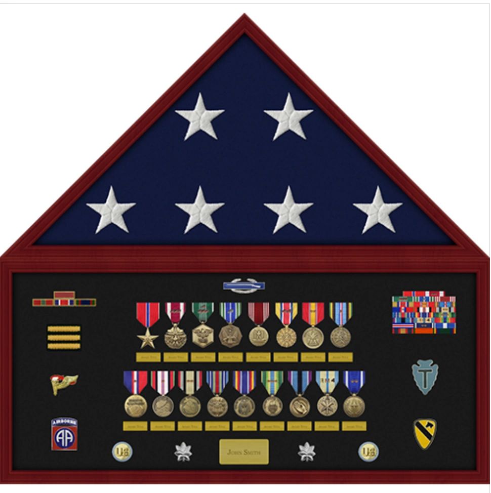 Shadow boxes can be used to display ceremonial weapons, medal ribbons and medals, unit and combat patches, rank insignia, and other meaningful items from a veteran’s military career.